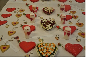 „Herz-„Kunstwerke her, die beim Tag der offenen Tür verkauft wurden. Der