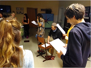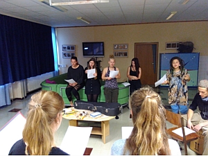 gesungen. Daran nehmen ca. 15 Schülerinnen teil, die nach einem langen